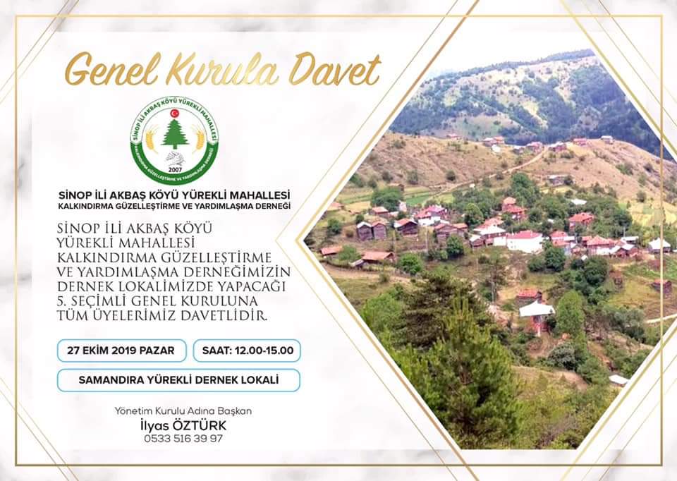 Dost ve akraba köyümüz Akbaş Köyü Yürekli Mh. Derneğinin Genel kurulunda Başkan seçilen Özcan Öztürk ve yönetim kurulunu tebrik ediyor, 2 dönem üyeleri ve Mahallesi için emek veren, her zaman derneğimizle omuz omuza olan  İlyas Öztürk ve yönetimine teşekkür ediyor, bundan sondaki hayatlarında sağlık ve esenlikler diliyoruz.